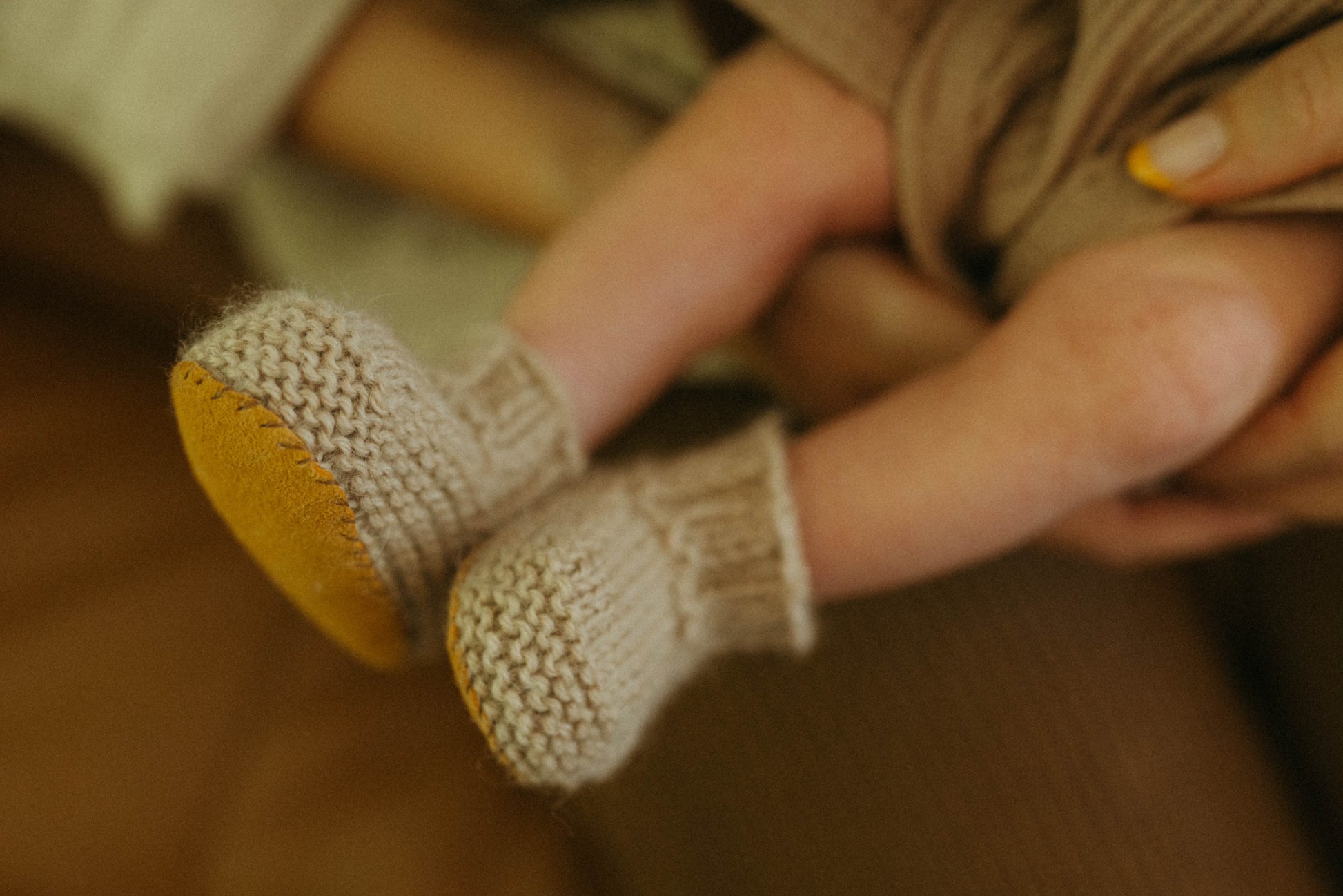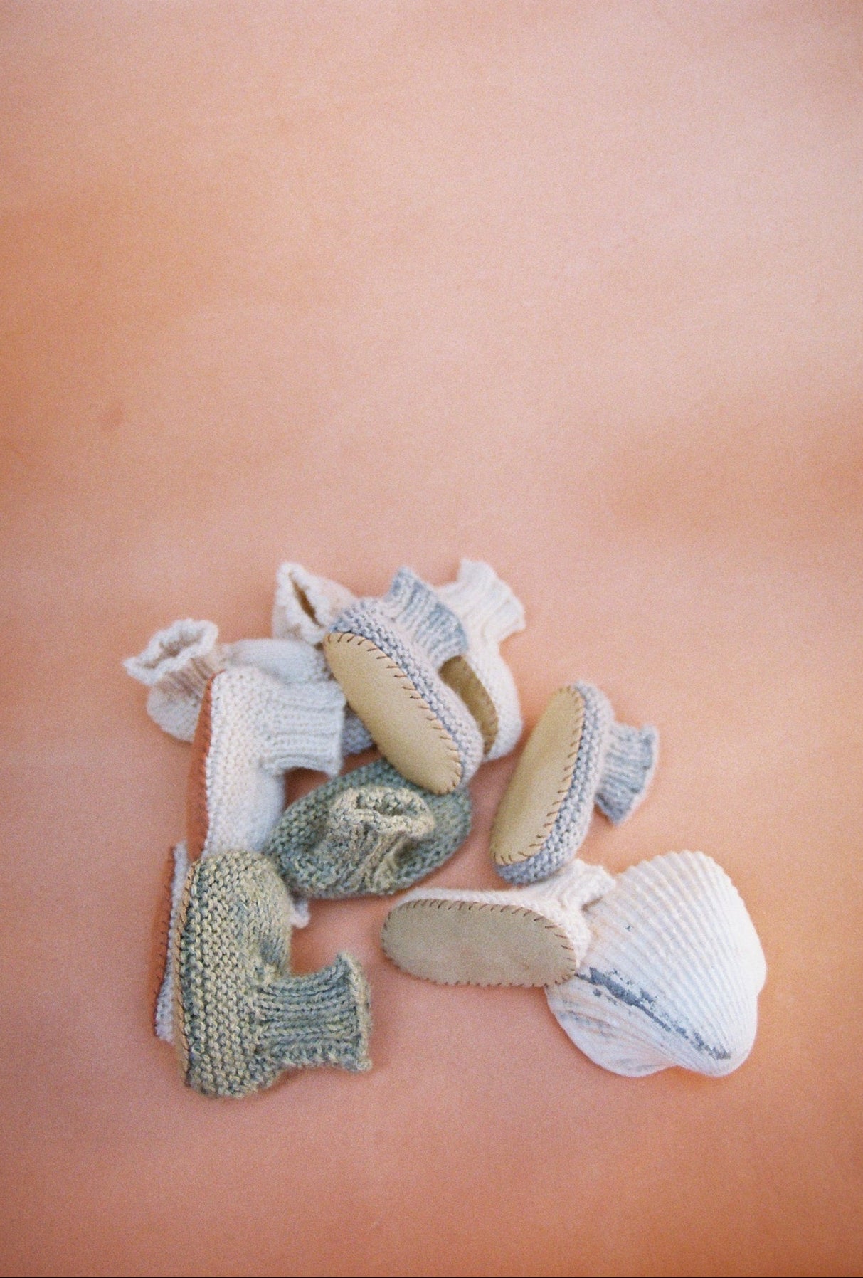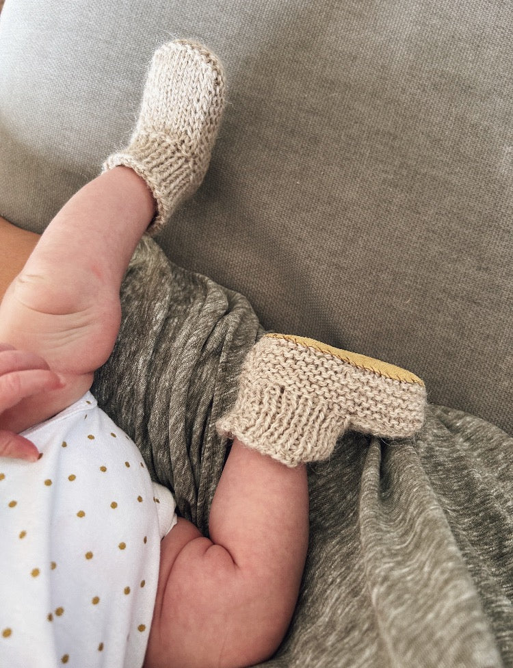 These booties are a special sister collaboration that we are excited to share. They are hand knitted on the east coast then sent over to the west coast for the suede soles. My sister uses baby alpaca yarn, hypoallergenic with thermal properties make it the best material for the little ones.