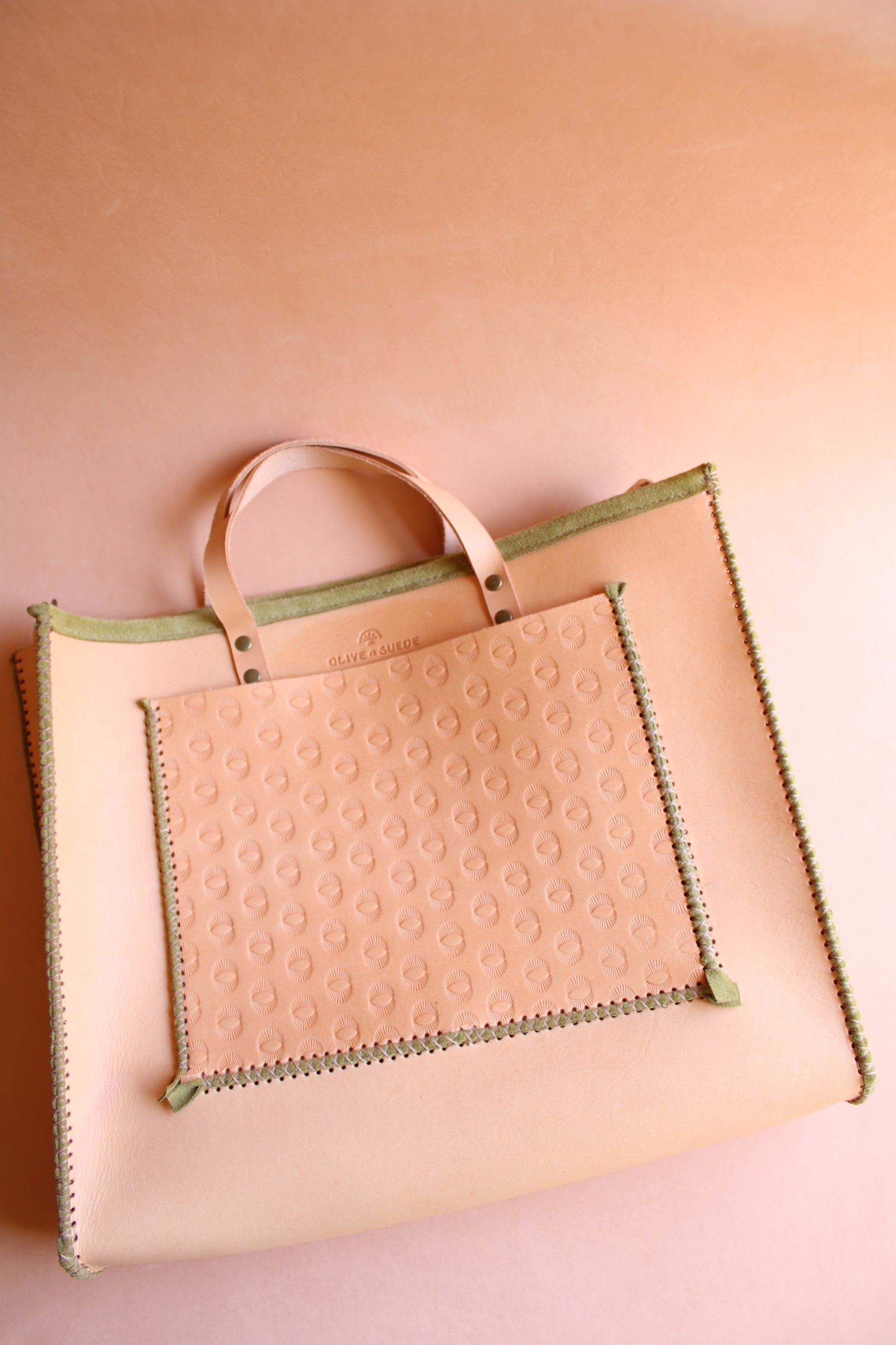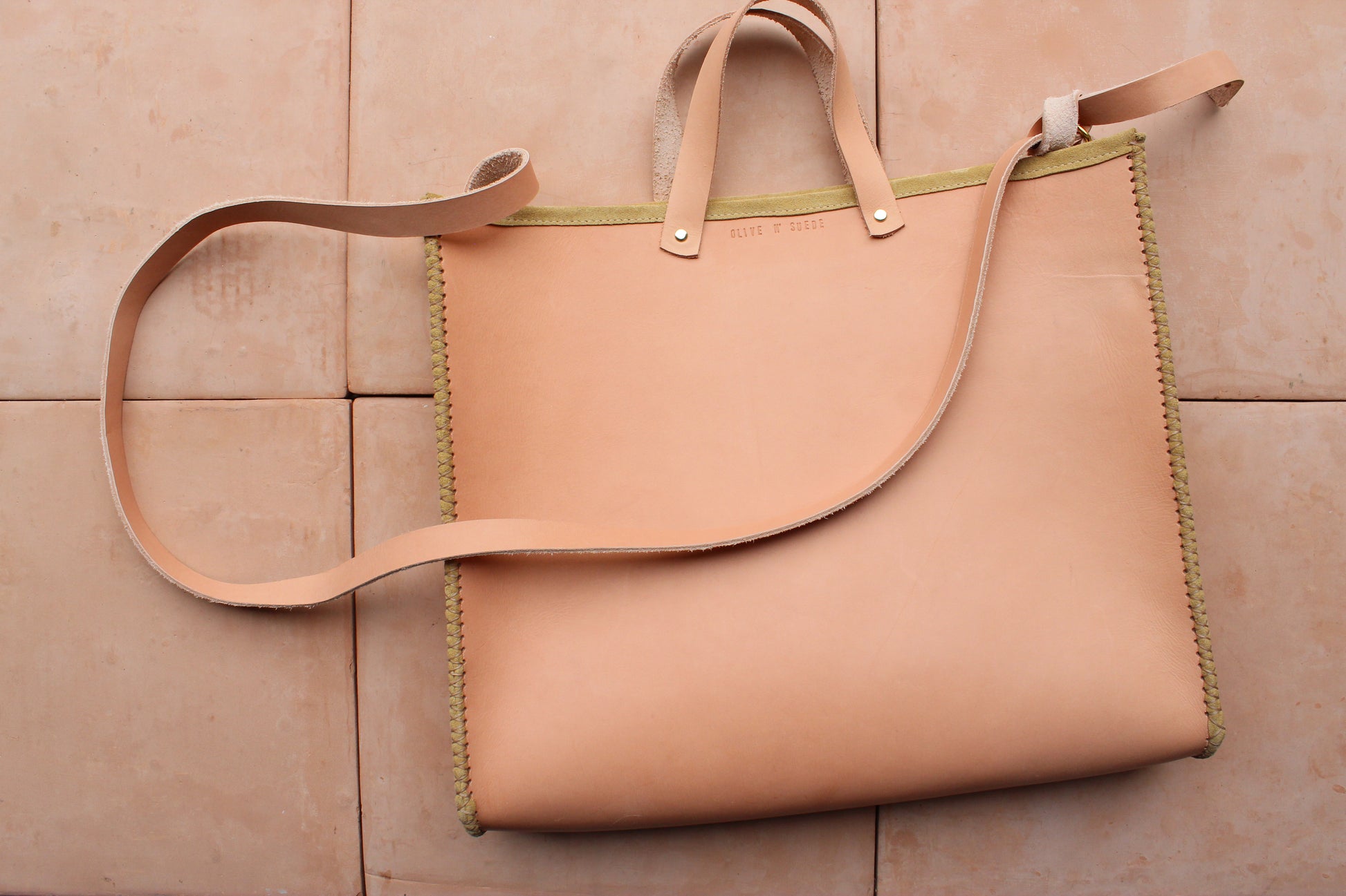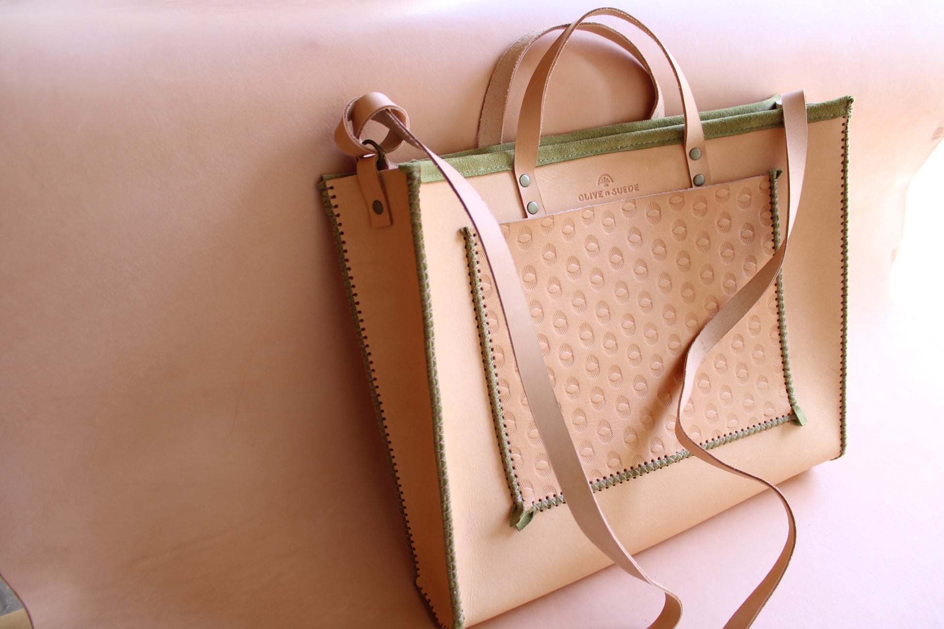The Morocco Tote was made by combining colorful suede lining, hand stamped patterns and leather tanned by the sun. Its larger in size with an exterior pocket, handles and long adjustable strap. The sides and pocket are hand stitched with a braided polyester thread that is super durable. With the nature of the Veg tan leather it will darken with wear, giving it a special touch.